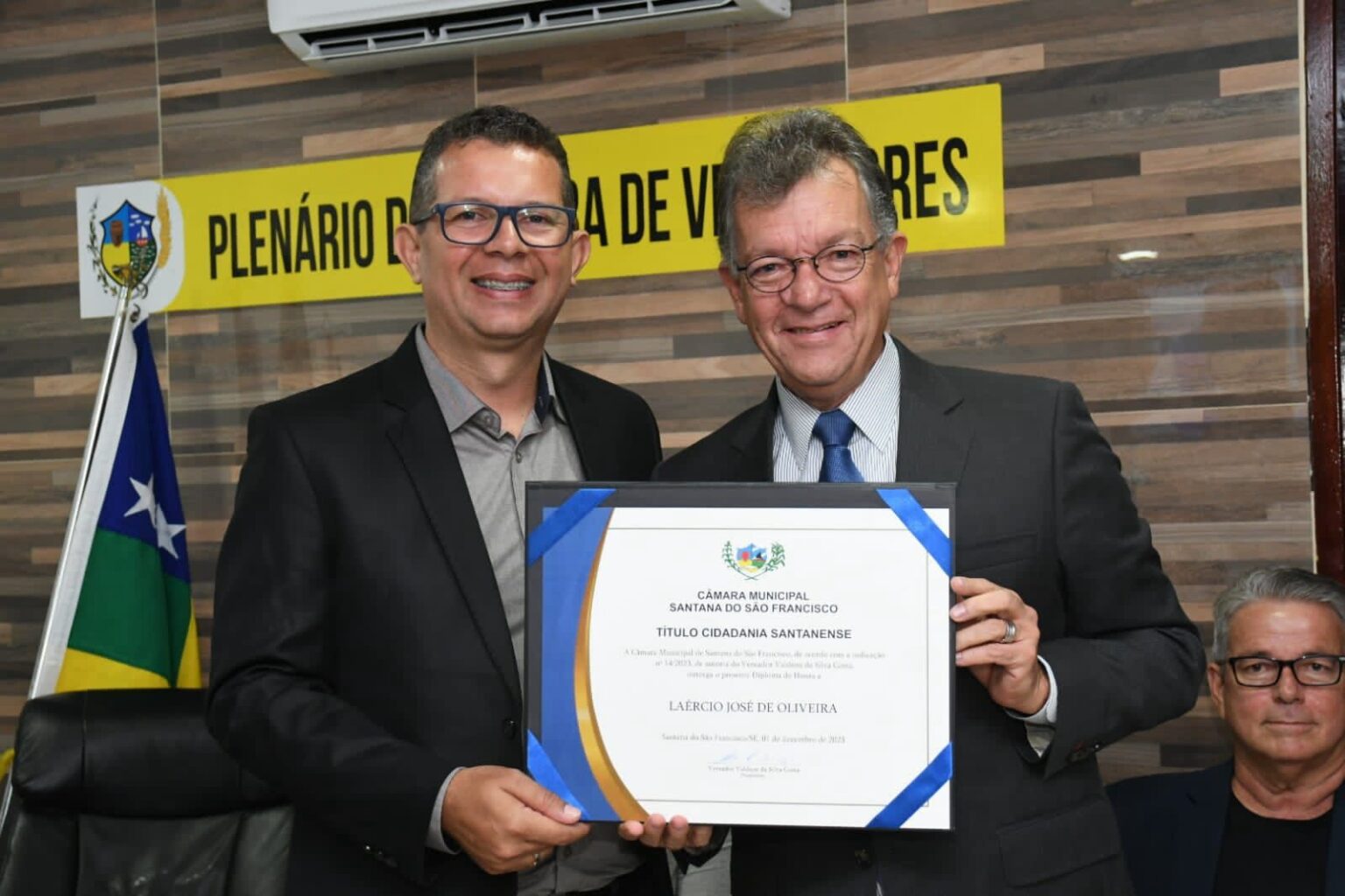 Além do senador Laércio Oliveira, a solenidade também homenageou com o título de cidadão santanense o presidente do Sistema Fecomércio, Marcos Andrade, e o diretor de Senac, Marcos Sales. O evento contou com a presença do deputado estadual Luciano Pimentel, vereadores locais e de outros municípios, ex-vereadores e parlamentares da região.